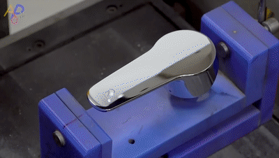 首先是对出水口螺纹的加工,通过工装的定位,加工一件只需要几秒钟的时间。接下来是对进水口出安装孔的加工。同样是先使用工装夹具定位,然后加工外圆以及铣断面。然后先钻孔,接着攻螺纹,这样就完成了初步的加工。不过此时的毛坯表面并不是很满足,接下里还要对水龙头表面进行打磨,这一步是通过人工使用打磨机进行打磨,经过打磨之后的水龙头表面更加圆润光滑。